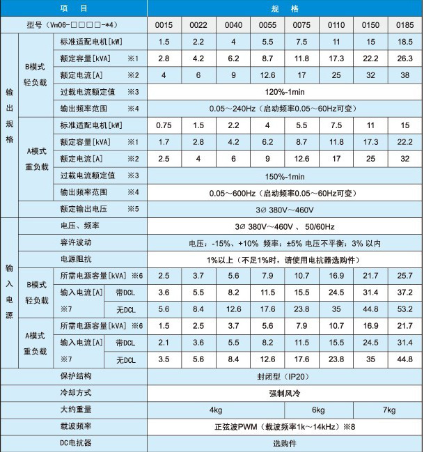 *9: Vm06-1100-*4~Vm06-3150-*4標準內置EMC濾波器。