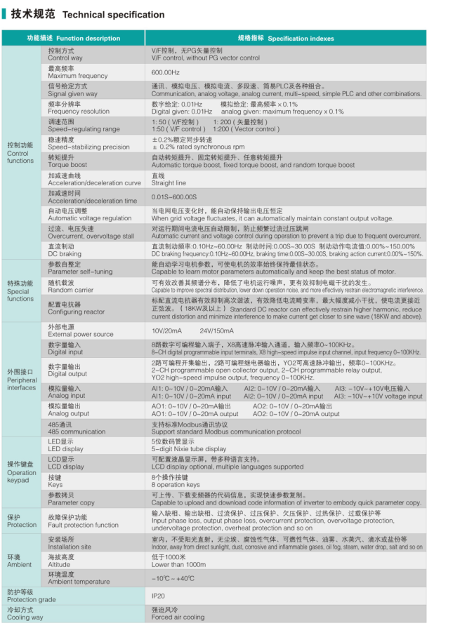 ◎ 輸入和輸出缺相、輸出短路保護等超過(guò)20種保護。